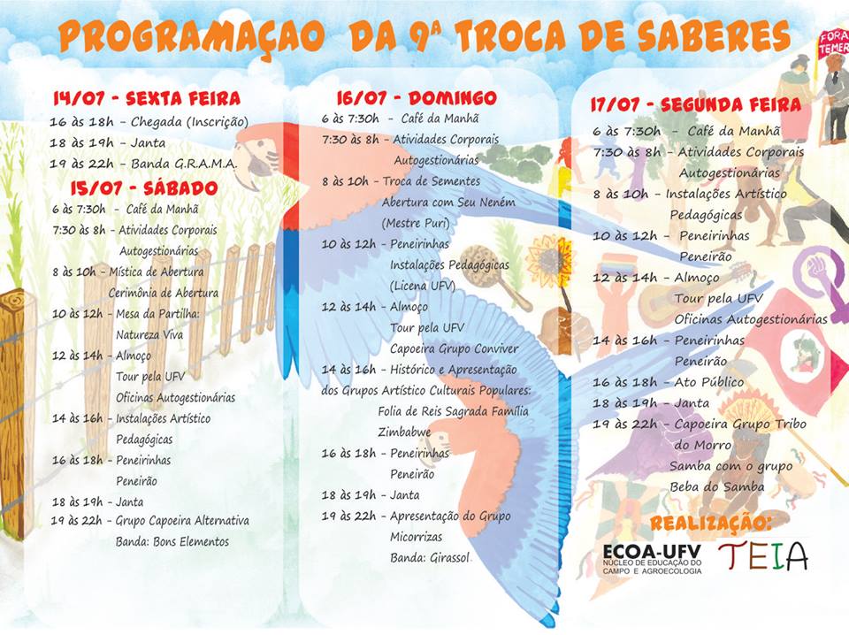 Acontece na UFV até o dia 17 de julho a 9º edição da Troca de Saberes que tem como tema Diálogos das diversidades: Resistência e liberdade em nossas terras e territórios. Com o objetivo de apresentar, socializar e discutir experiências cotidianas, conhecimentos tradicionais e práticas de sucesso na pequena produção. A expectativa dos organizadores é superar o número de participantes da edição anterior, que reuniu cerca de 780 pessoas.