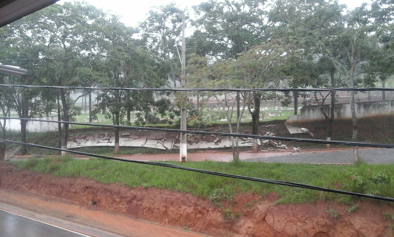 Outra ocorrência de destaque devido a chuva foi a queda de parte do muro do Cemitério Colina da saudade no bairro Vale do Sol. Segundo Paulinho Real, chefe do departamento de manutenção dos cemitérios da cidade, o que causou o desabamento do muro foi a grande quantidade de enxurrada que desceu de uma encosta atrás do cemitério. O sistema de vazão de água não suportou o volume e o muro acabou desabando. A Defesa Civil foi acionada e isolou toda a extensão do muro para evitar novos acidentes. Paulinho Real afirmou, que amanhã (12), equipes da Secretaria de Obras irão refazer todo o muro do cemitério. Não existe um prazo previsto para que obra termine.