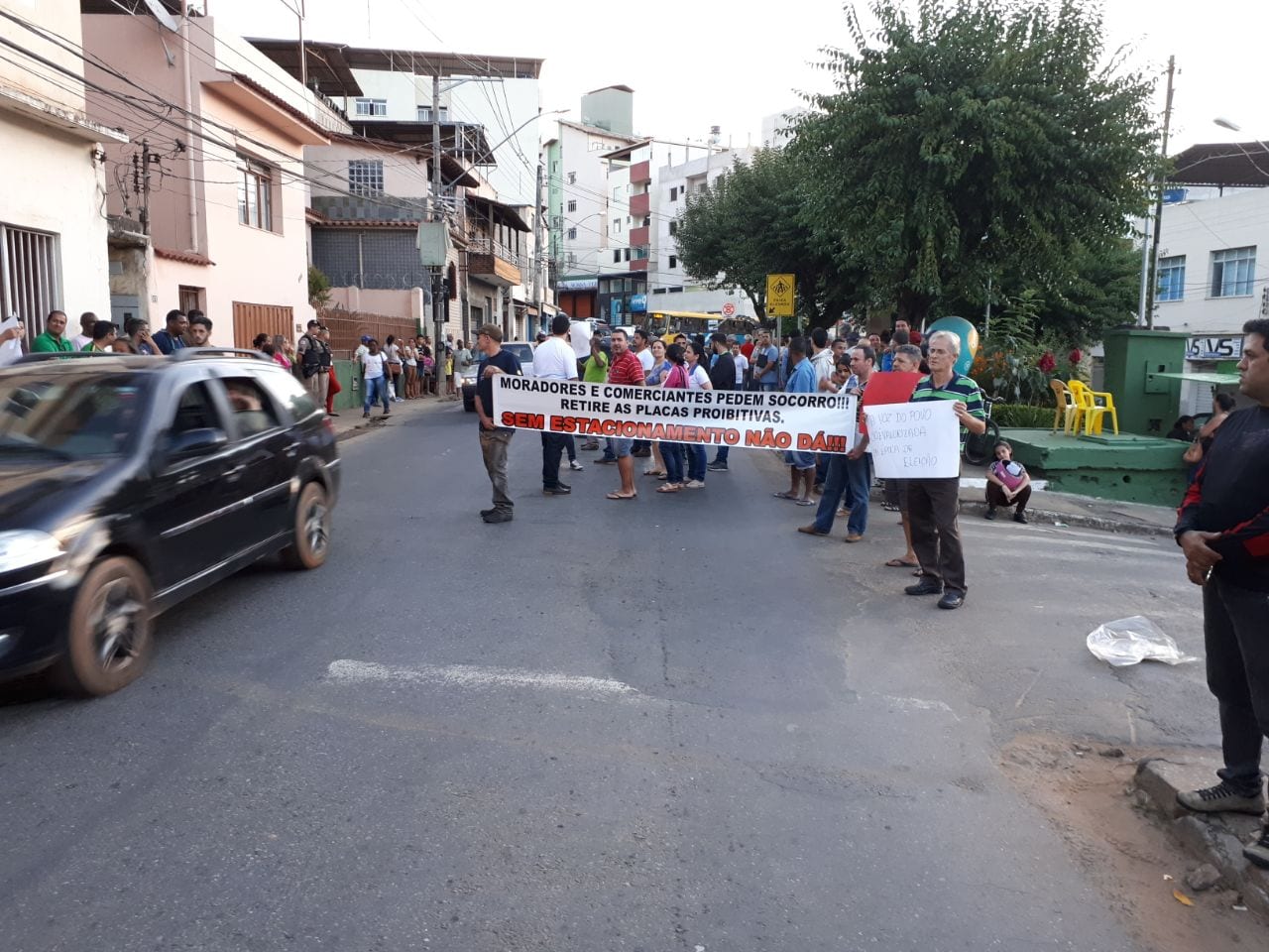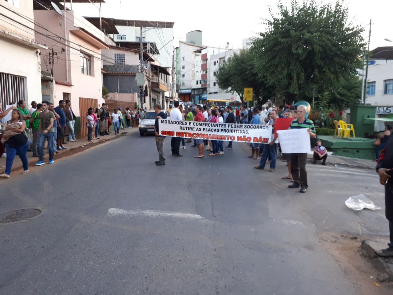 Com uma grande faixa estampada os dizeres "Prefeito são muitos empregos comprometidos, sem estacionamento não dá." um grande número de pessoas bloqueou parte do trânsito da rua revogando o direito de estacionamentos. Comerciantes locais afirmam que estão sendo prejudicados pela proibição de paradas próximas aos seus estabelecimentos.