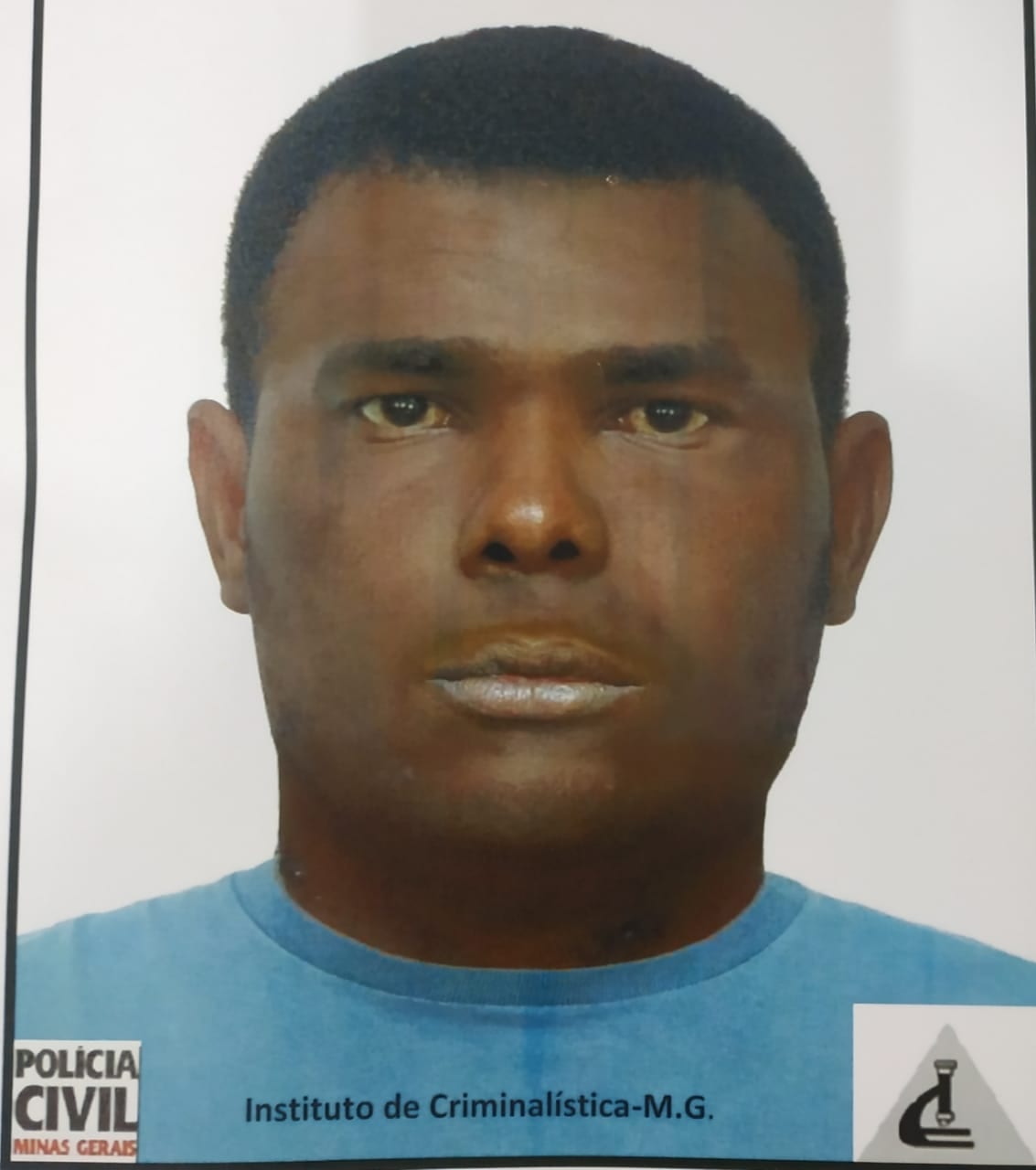 O autor é negro, alto e de porte avantajado, aparentando idade entre 35 e 40 anos.