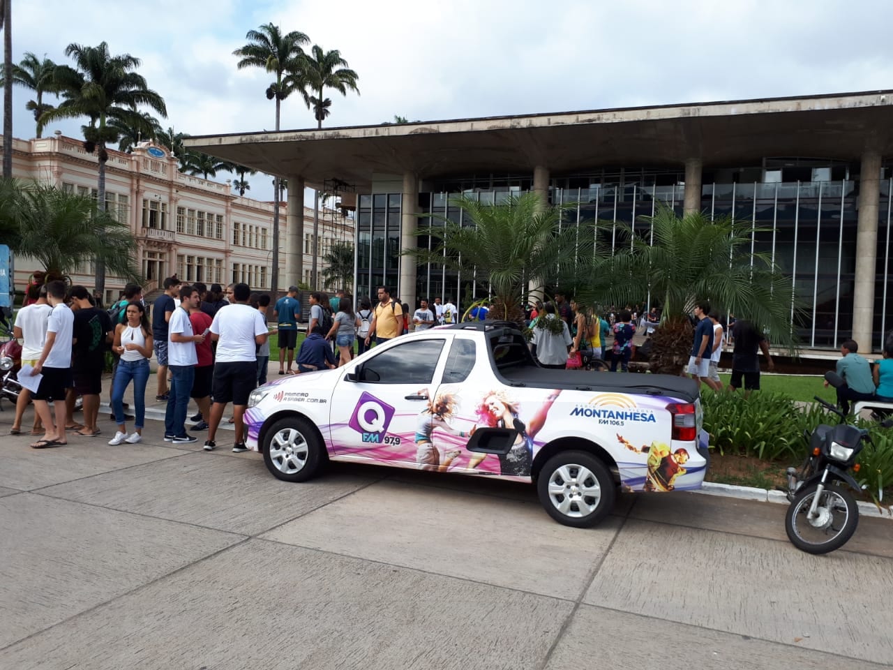 A equipe da Rádio Montanhesa e da Rádio Q FM estão no local realizando a recepção dos calouros e dando boas-vindas aos novos estudantes.