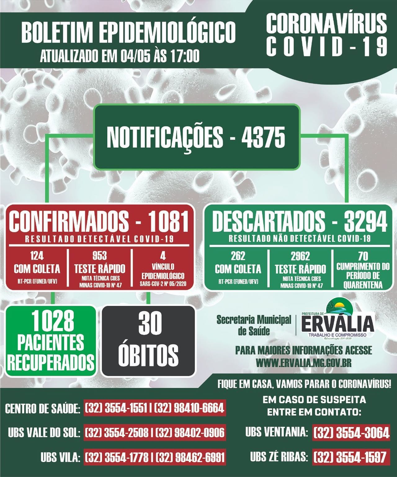 As nove cidades quem compõem a microrregião de Viçosa publicaram na tarde desta terça-feira, 4, os seus boletins epidemiológicos.