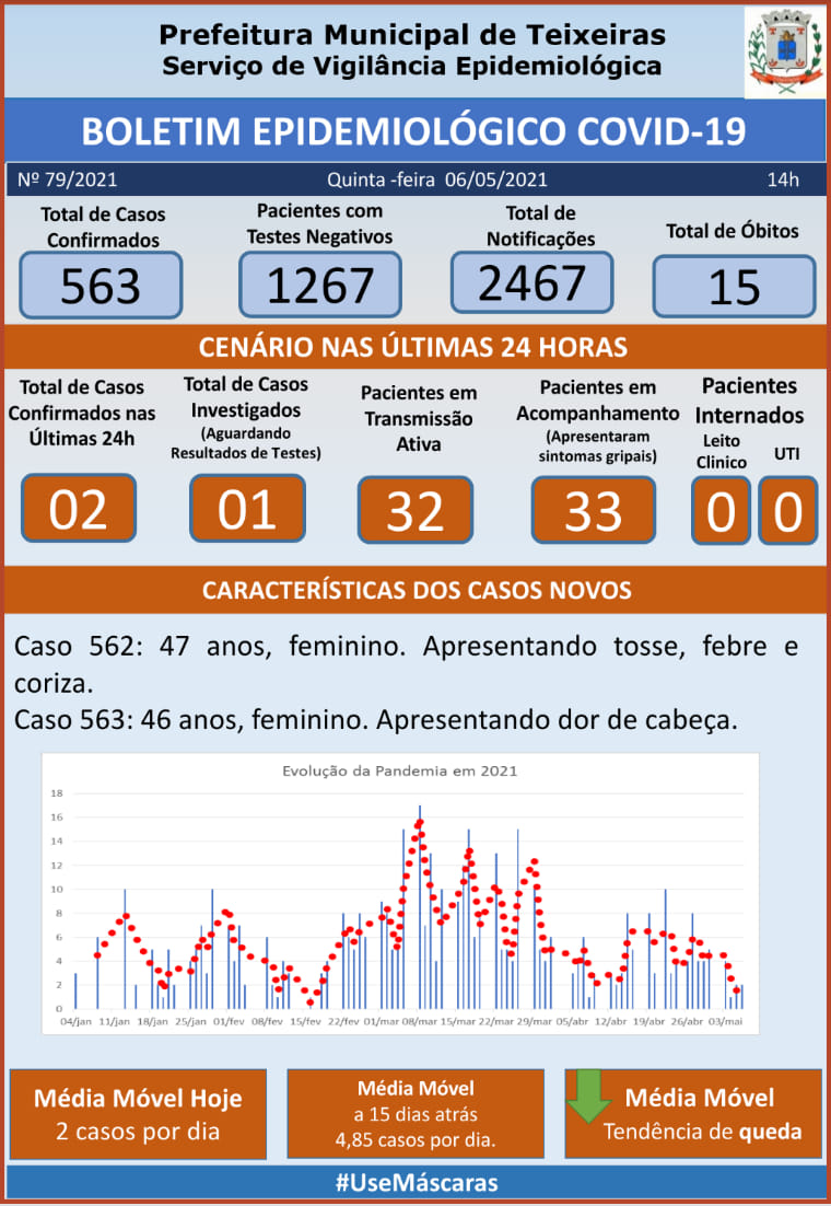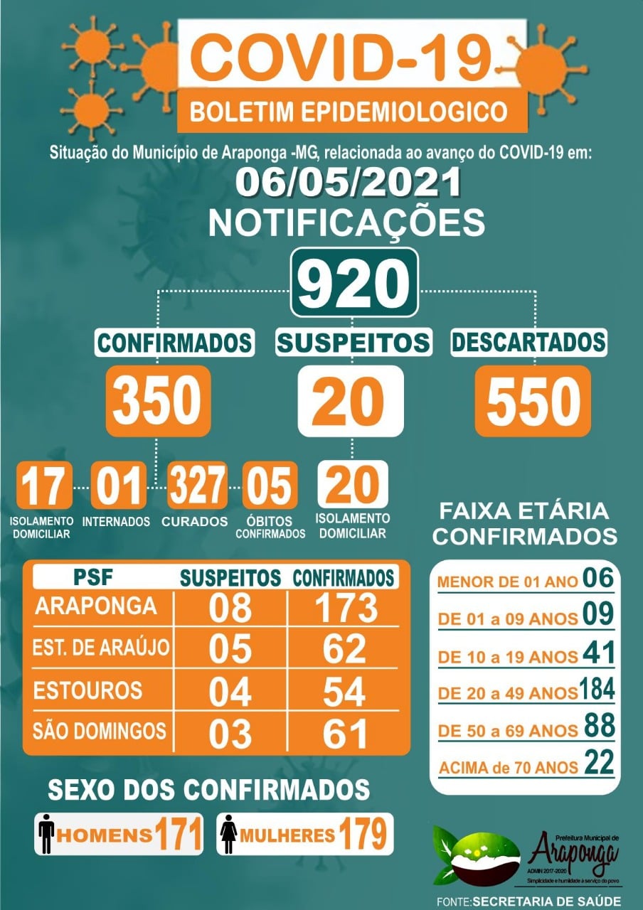 Pedra do Anta e Araponga não tiveram registro de casos e óbitos hoje. As equipes continuam monitorando os casos ativos que seguem em isolamento domiciliar.