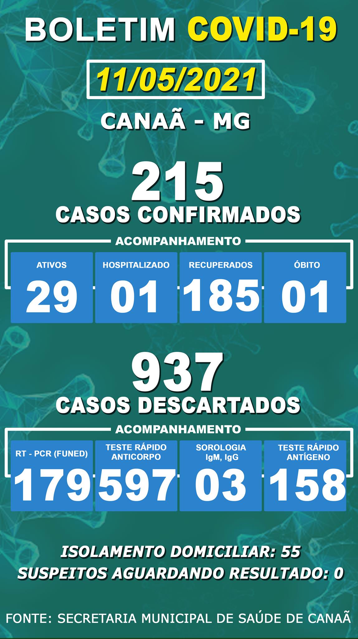 Canaã - O município registrou nesta segunda-feira, 11, seis novos casos confirmados de coronavírus. Canaã tem até o momento 215 casos confirmados, 185 pessoas se recuperaram da doença e um óbito.