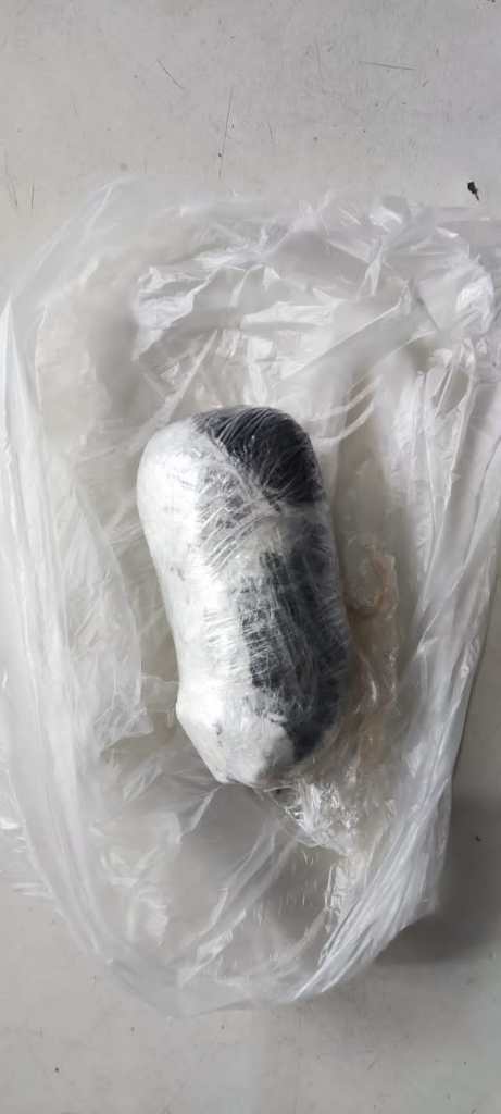 A suspeita foi encaminhada para o Hospital São Sebastião para passar pelo raio-x, mas antes que o procedimento acontecesse, os policiais penais encontraram um objeto envolto em plástico filme. Dentro do objeto estavam uma porção de fumo, partes de um carregador de celular, um aparelho celular com a capa e uma porção de cocaína.