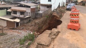 As água das chuvas abriram uma cratera na junção das rua João Ludigerio Miranda e Jacob Lopes de Castro, no bairro São José, em Viçosa. Cristimar do Vale Castro, chefe