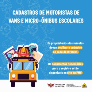 A Diretran (Diretoria de Trânsito) da Prefeitura de Viçosa está realizando o cadastro semestral dos condutores e proprietários de vans e micro-ônibus do transporte escolar. A ação visa regularizar essa
