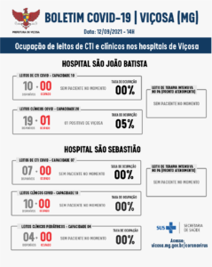 A secretaria de Saúde de Viçosa divulgou ontem, domingo, 12, o boletim de internações, hoje a prefeitura deve divulgar o boletim com os números de casos ou óbitos se houver.
