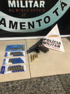 Durante Operação batida policial, a Sala de Operações recebeu ligação informando que um homem, dono de uma loja de material de construção estaria de posse de uma pistola calibre 9mm