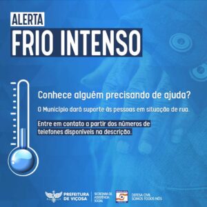 O Setor de Alta Complexidade da Secretaria de Assistência Social, da Prefeitura de Viçosa, comunica que, em decorrência da frente fria que se aproxima, colocou à disposição da população alguns