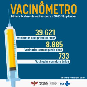 O Setor de Atenção Primária em Imunizações, da Secretaria Municipal de Saúde, divulga os dados da vacinação contra a Covid-19, referente ao dia 12 de julho. Em Viçosa, já são