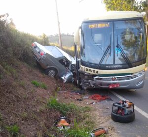 Colisão frontal entre carro e ónibus em Silvestre deixa duas pessoas gravemente feridas