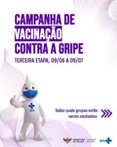 Começou nesta quarta-feira, 09, a terceira e última etapa da vacinação contra a gripe, em Viçosa. O Setor de Atenção Primária em Imunizações, da Secretaria Municipal de Saúde, preparou um