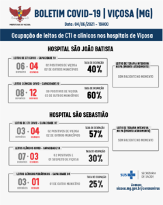 A Secretaria Municipal de Saúde, por meio da Vigilância Epidemiológica, divulga o balanço das internações desta sexta-feira, 4. O tradicional Boletim Epidemiológico detalhando os casos será divulgado nesta segunda-feira, 07,