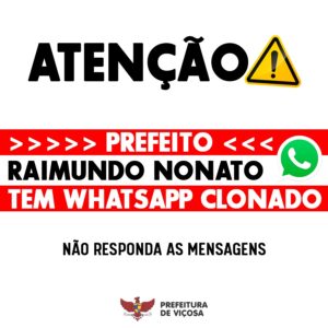 A prefeitura de Viçosa divulgou na tarde desta quarta-feira, 19 uma nota informado que o celular do prefeito Raimundo Nonato havia sido clonado e pedindo para que as pessoas não