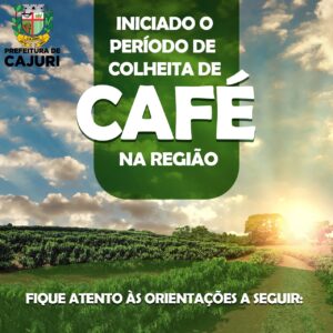 A Polícia Militar de Cajuri divulgou uma série de recomendações para que o produtor rural tome cuidado na época da colheita do café na cidade. Entre cuidados pessoais e gerais,