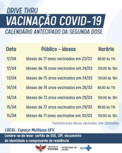 Calendário de Vacinação contra a Covid-19, de 12 a 15 de abril