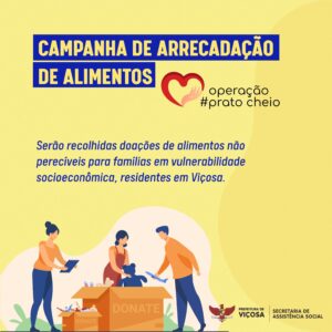 A Secretaria Municipal de Assistência Social está promovendo uma campanha de arrecadação de alimentos para famílias em vulnerabilidade socioeconômica de Viçosa. Batizada de “Operação Prato Cheio”, a campanha tem como