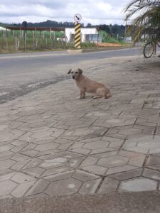 Essa cadelinha foi abandonada na região do Fundão, em Viçosa. Ela é muito boazinha e tem o porte bem pequeno. Precisa de uma família ou de um lar temporário para