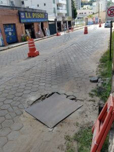 A obra na avenida Bueno Brandão estão paralisadas há cerca de uma semana e, até o momento, não há previsão de retorno. Isso porque, a empresa Sales Construções e Empreendimentos