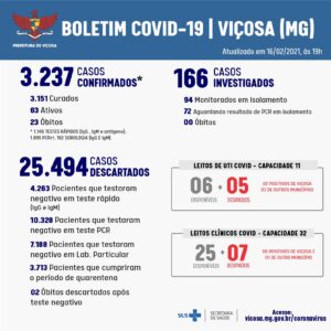 A Vigilância Epidemiológica confirmou o 23º óbito por Covid-19, nesta terça-feira, 16. Trata-se de uma idosa, de 78 anos, que testou positivo para a doença no dia 6 de fevereiro,