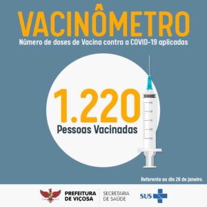 O Setor de Atenção Primária em Imunizações, da Prefeitura de Viçosa, divulgou balanço de vacinação contra a Covid-19. De quinta-feira, 21, até esta terça-feira, 26, o vacinômetro registra a aplicação