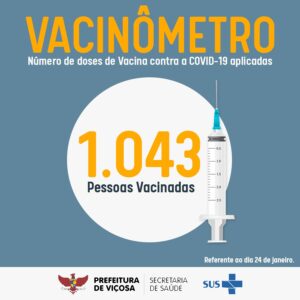 O Setor de Atenção Primária em Imunizações, da Prefeitura de Viçosa, divulgou balanço de vacinação contra a Covid-19. De quinta-feira, 21, até domingo, 24, o vacinômetro registra a aplicação de