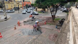 Obras de recuperação do piso da AV. Bueno Brandão já foram iniciadas