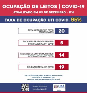 A Secretaria Municipal de Saúde informa a taxa de ocupação dos leitos credenciados covid para a Microrregião de Ubá, todos situados no Hospital Santa Isabel. Segundo a Prefeitura de Ubá,