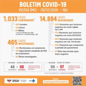Mais 36 pessoas testaram positivo para Covid-19 nesta quarta (09) em Viçosa. Segundo o boletim epidemiológico, os resultados são de 28 testes PCR coletados pela Secretaria de Saúde e enviados