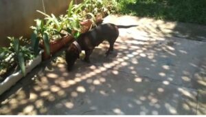 Essa cadelinha, chamada temporariamente de Suzy, foi abandonada na região do Fundão a um mês. Muitas pessoas estavam judiando dela na rua, brigavam muito com ela. Agora, está em lar