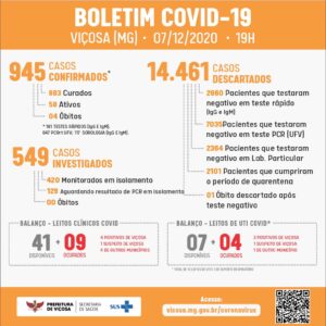 Boletim desta segunda (07) informa 11 novos casos de Covid-19 em Viçosa