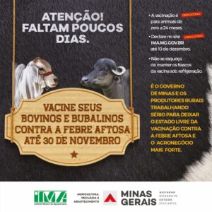 Vacinação contra febre aftosa em Minas vai até essa segunda-feira (30)