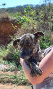 Essa é a Tica/Bonita, a rajadinha da Bioagro. As pessoas que estão fornecendo lar temporário para ela estão correndo contra o tempo para conseguir um lar definitivo, pois não possuem