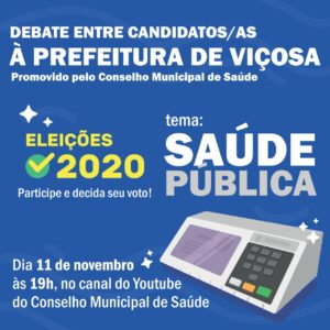 O Conselho Municipal de Saúde irá realizar um debate entre os candidatos à Prefeitura de Viçosa. O tema do debate será saúde pública. O debate será no dia 11 de