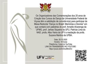 Os Cursos de Graduação em Dança (Licenciatura e Bacharelado) da Universidade Federal de Viçosa/UFV são os primeiros nessa área em Minas Gerais e 15 do Brasil. A Comissão de Criação