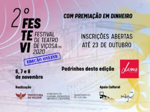 Estão abertas até o próximo dia 23 de outubro as inscrições para a 2ª edição do FESTEVI – Festival de Teatro de Viçosa. Podem se inscrever grupos de teatro de todo