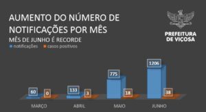 Em Junho foram registrados 38 casos positivos de Covid-19 em Viçosa. Nesse período, a Secretaria de Saúde intensificou as ações para detectar a presença do vírus no município. Mais da