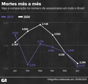 Mesmo com quarentena, Brasil tem alta de 6% no número de assassinatos no 1º semestre