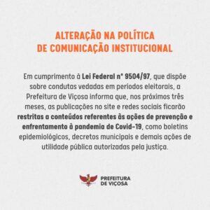 Prefeitura de Viçosa divulga procedimentos de divulgação institucional durante o período eleitoral