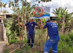 Projeto técnico social da ETE-Viçosa instala placas educativas ao longo do Ribeirão São Bartolomeu
