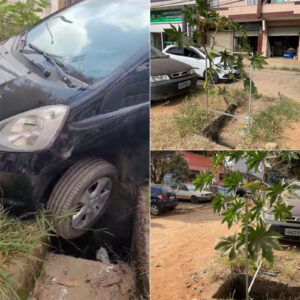 Carro cai em bueiro aberto na rua Alvaro Gouveia