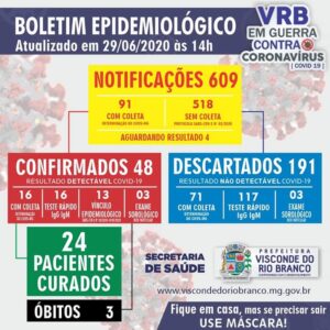 Visconde do Rio Branco registra 48 casos confirmados de COVID-19