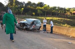 Um homem ficou gravemente ferido em um acidente na tarde dessa quinta-feira (23), entre um Fiat Uno e um caminhão no KM 16 da rodovia MG 445 na Ponte do