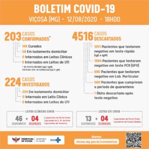 Viçosa ultrapassou a barreira dos 200 casos positivos de Covid-19 nesta quarta-feira (12). A Vigilância epidemiológica confirmou 8 novos casos e o total de infectados no município subiu a 203.
