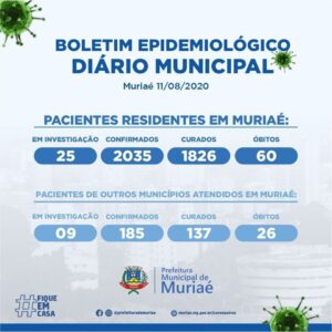 O boletim desta terça-feira trouxe novo aumento nas estatísticas da covid-19 em Muriaé. Houve o registro de mais um óbito, o de número 60 entre moradores locais. Desta vez, a