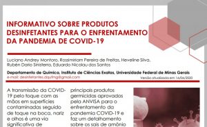 Um informativo publicado por professores do Departamento de Química da UFMG, nesta terça-feira (16), afirma que sais de amônio quaternários, presentes em vários tipos de desinfetantes disponíveis no mercado, são