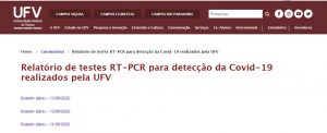 UFV disponibiliza boletim diário de testes realizados para detecção da Covid-19