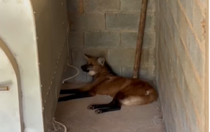 Um Lobo-Guará ferido e com miíase (bicheira) foi resgatado na última sexta-feira (26) no Paraguai, distrito de Cajuri. A ação foi um esforço conjunto da Polícia Militar do Meio Ambiente