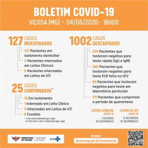 Chega a 25 o número de casos de COVID-19 em Viçosa